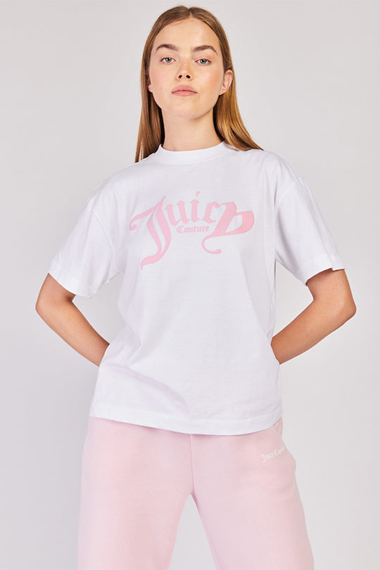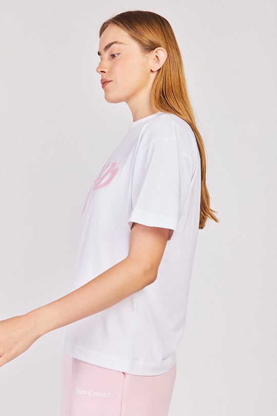 טי שירט קרופ קצרה Graphic Fitted בצבע לבן