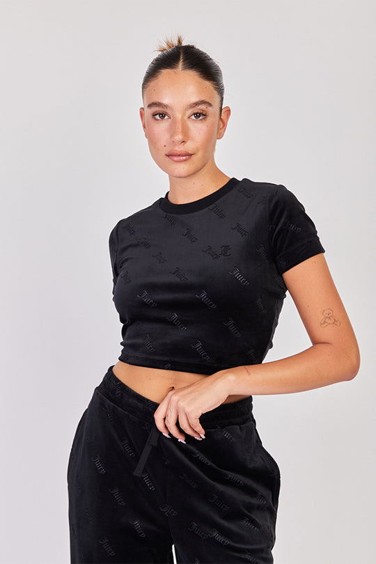 טי שירט קטיפה קצרה Diamonds בצבע שחור