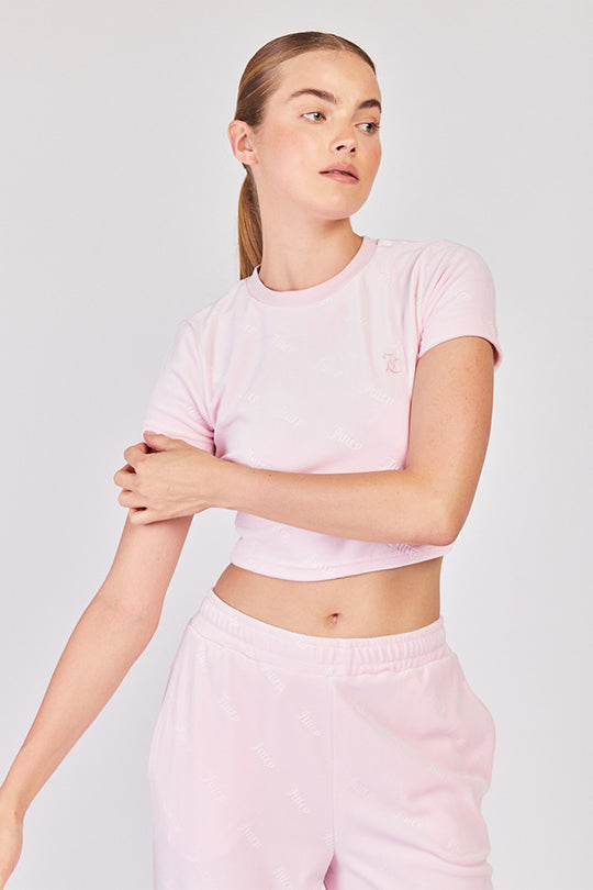 טי שירט קרופ קצרה Fitted בצבע ורוד
