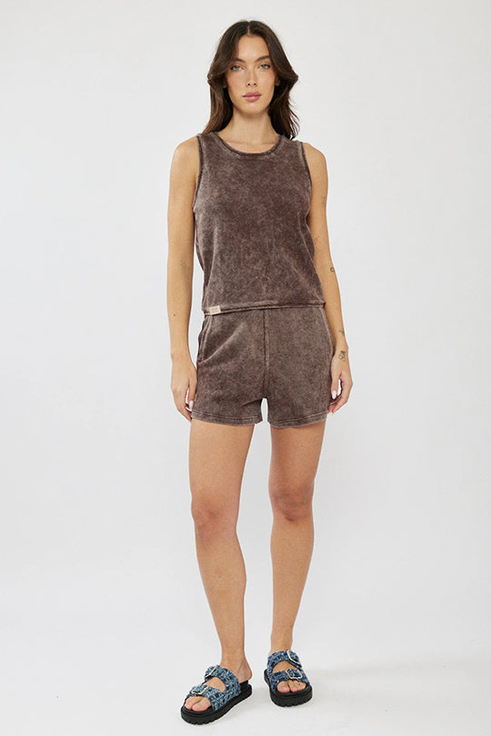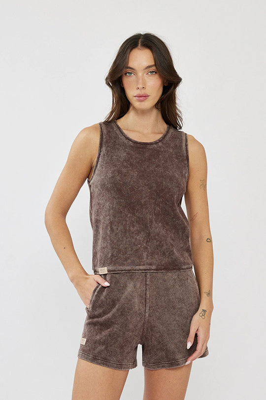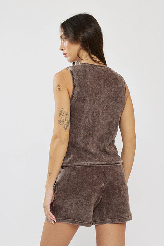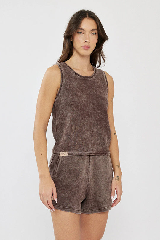 גופייה לנשים בגזרת טנק קלאסית, עשויה בד כותנה בטקסטורת וופל ייחודית בצבע אפור כהה. הגזרה ישרה ומשוחררת עם מפתח עגול מחמיא, המתאימה ללבישה יומיומית בקיץ או כשכבה בסיסית מתחת לחולצה או ז׳קט. בד נעים למגע המעניק מראה קז׳ואלי ועדכני.