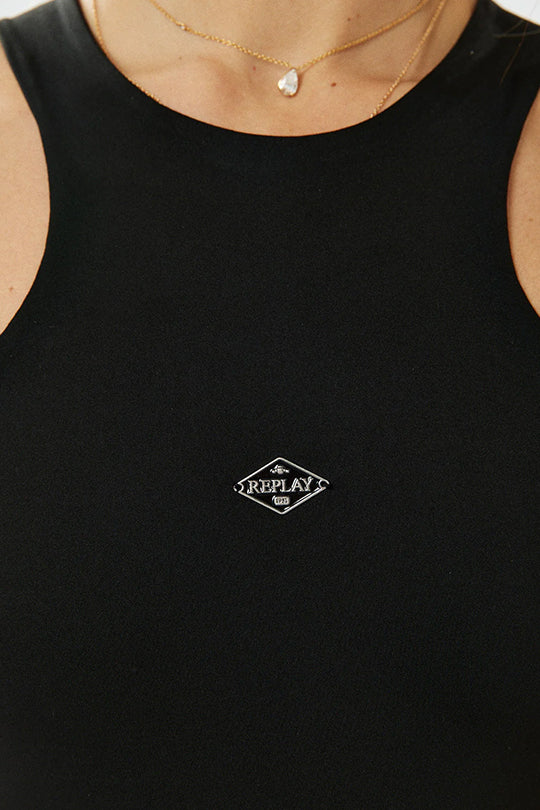 גופיית קולר לנשים בגזרה צמודה ומחמיאה בצבע שחור, בעיצוב נקי וספורטיבי. עשויה בד כותנה עם אלסטיות קלה לנוחות והתאמה מושלמת לגוף. כוללת מפתח צוואר גבוה ולוגו קטן בחזית להשלמת המראה. מתאימה לשילוב עם מכנס בגזרה גבוהה ליצירת לוק אורבני מודרני ומדויק.