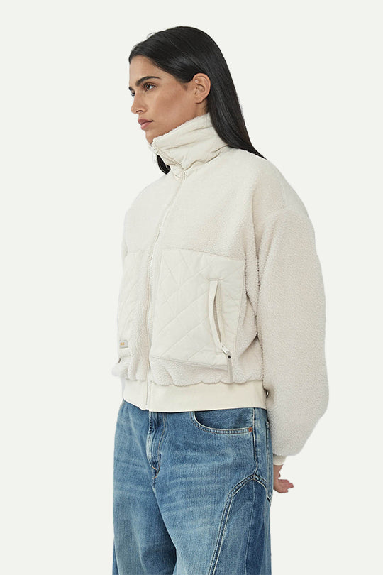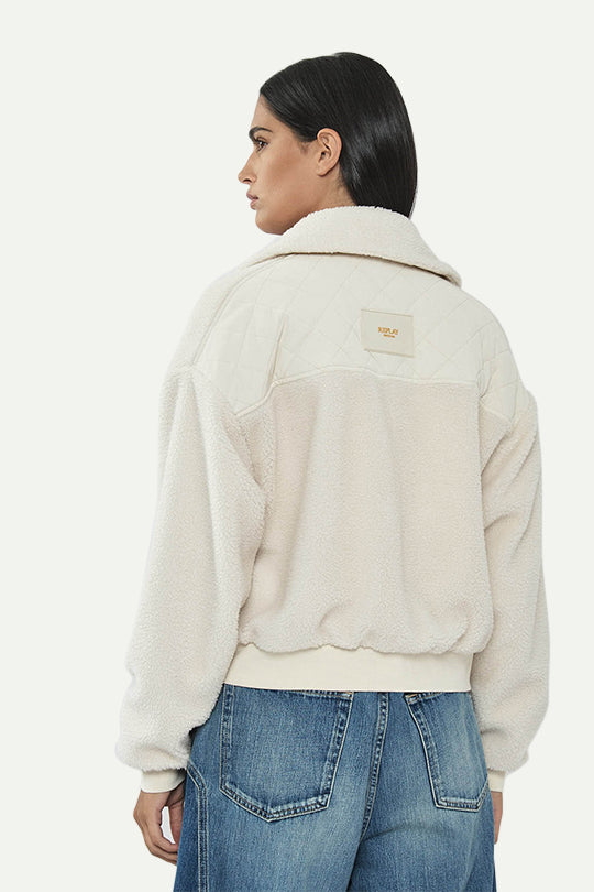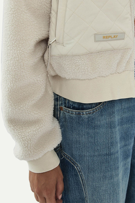 ג׳קט לנשים בגזרה קצרה ומחמיאה, עשוי בד פרווה סינתטית רכה בשילוב פנלים מרופדים בגוון תואם. כולל סגירת רוכסן קדמית, כיסים קדמיים גדולים ומכפלת עם גומי עדין להתאמה מושלמת. הצבע הבז׳ הבהיר מעניק מראה אלגנטי וחמים, מושלם ללוק יומיומי בעונות המעבר או לימי חורף קרירים. מתאים לשילוב עם ג׳ינס או חצאית למראה קז׳ואלי-שיק.