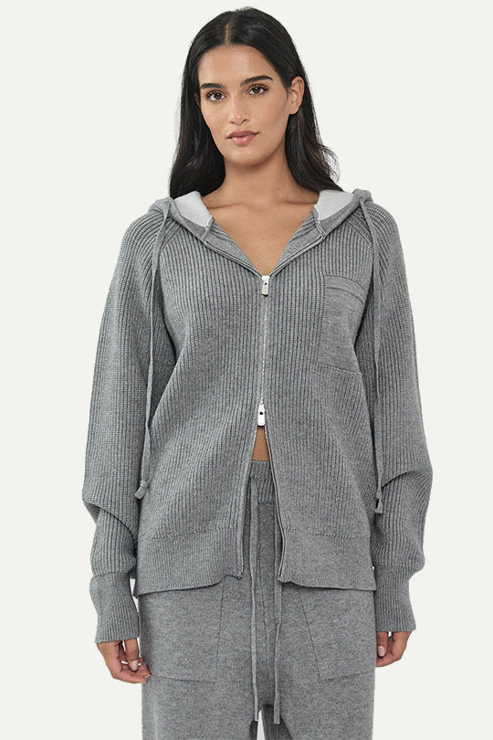 קפוצ'ון סריג רך בגזרה משוחררת עם רוכסן קדמי מלא.