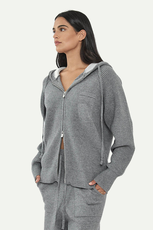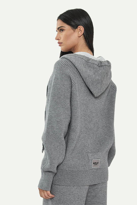 קפוצ'ון סריג עם רוכסן בצבע אפור