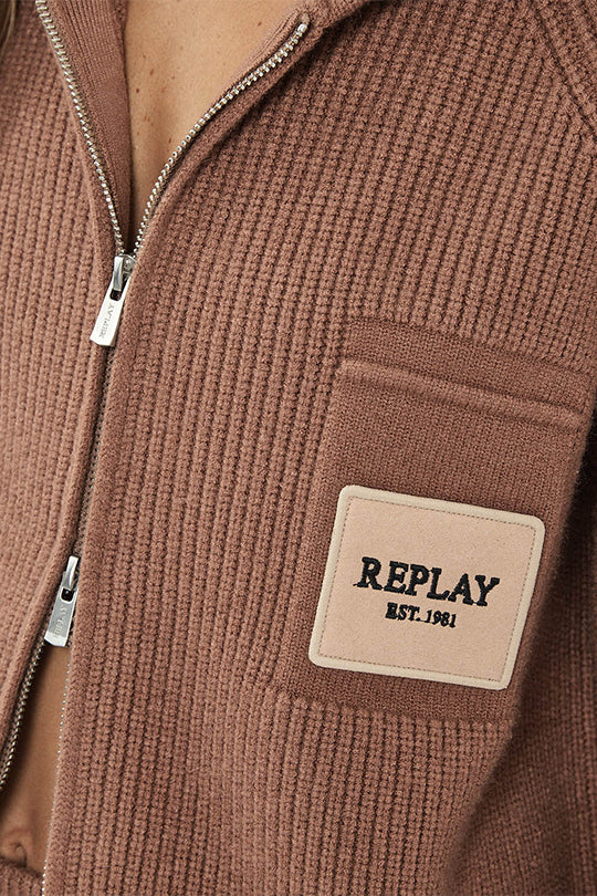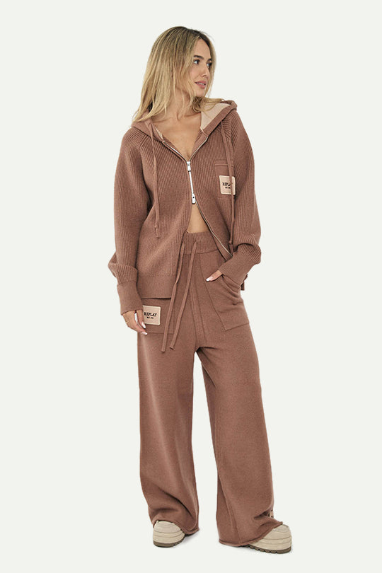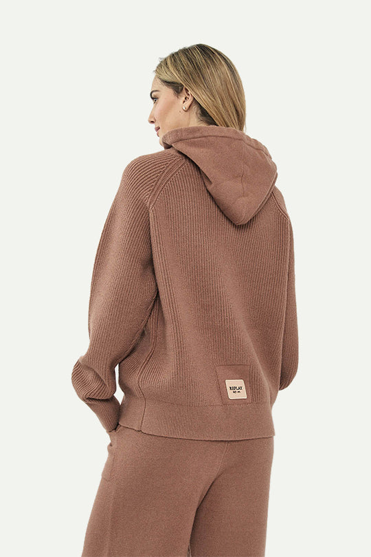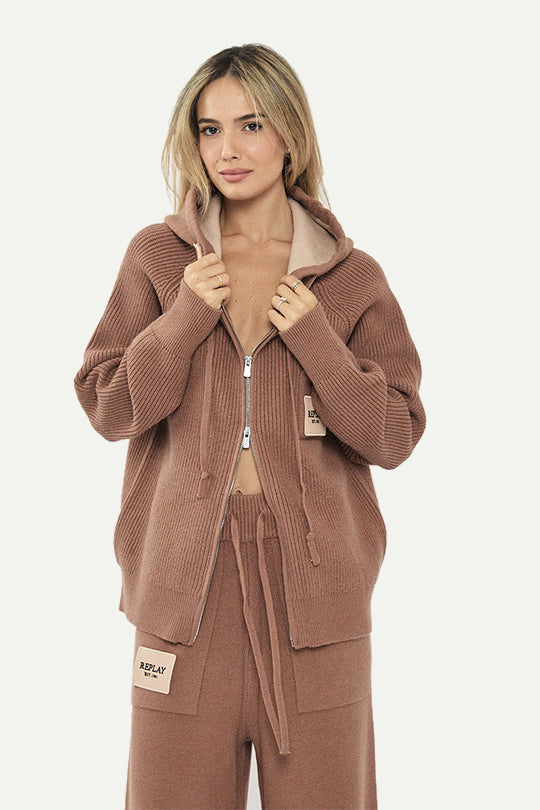 קפוצ'ון סריג רך ונעים בגוון טאופ עם רוכסן כפול וסיומת ריב.
