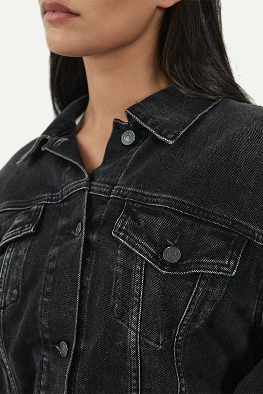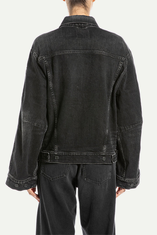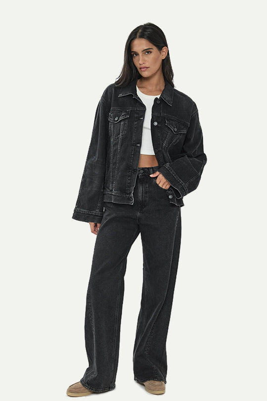 ג’קט ג’ינס לנשים בסגנון ריידר קלאסי, עשוי כותנה דנים איכותית עם שטיפה אפורה דהויה למראה וינטג’ עדכני. כולל שני כיסים עם כפתור בחזה, רוכסנים בחזית וכפתורים בגב להתאמת הגזרה. פריט על-זמני עם גזרה רחבה ונוחה – מושלם לשילוב מעל חולצה לבנה או סווטשירט לסטייל קז’ואלי ואלגנטי גם יחד.