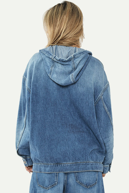עשוי בד ג׳ינס רך ונעים ללבישה, בגזרה משוחררת עם כיס קדמי גדול – מושלם לשילוב מעל טי־שירט או טופ, לימים קרירים ולסטייל אורבני קליל.