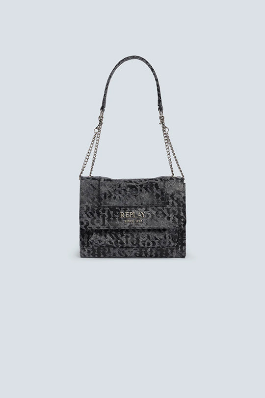 תיק ערב אופנתי לנשים בעיצוב אלגנטי עם הדפס לוגו בגוון אפור מטאלי. עשוי מחומר איכותי עם גימור מבריק ועדין, כולל רצועת שרשרת ארוכה לנשיאה על הכתף או באלכסון. סגירה קדמית עם לוגו מתכת כסוף להשלמת מראה יוקרתי ומודרני – מושלם לערב או ליציאה עם סטייל.