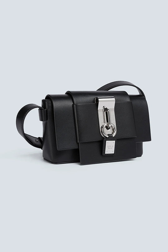 תיק צד מעוצב בסגנון אלגנטי-אורבני עם נוכחות חזקה – גימור חלק בגוון שחור קלאסי בשילוב אבזם מתכתי יוקרתי בגוון כסף. לתיק רצועת כתף נוחה הניתנת להתאמה, ותא מרכזי מרווח עם סגירה בטוחה. מתאים לשימוש יומיומי או לערב, כשאת רוצה להוסיף טאץ' אלגנטי ומודרני ללוק שלך.