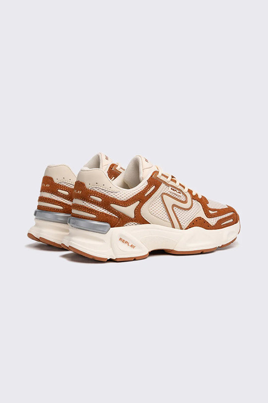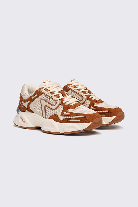 דגם FOREST לנשים מקולקציית DESTINY של REPLAY – סניקרס בעלות לוק טבעי-אורבני בגווני טאן ולבן. שילוב ייחודי של טקסטורות ועיצוב דינמי עם סוליית פלטפורמה נוחה, לוגו מוזהב ותפרים מודגשים. מושלמות לשדרוג כל הופעה יומיומית בסטייל מרענן ונועז.