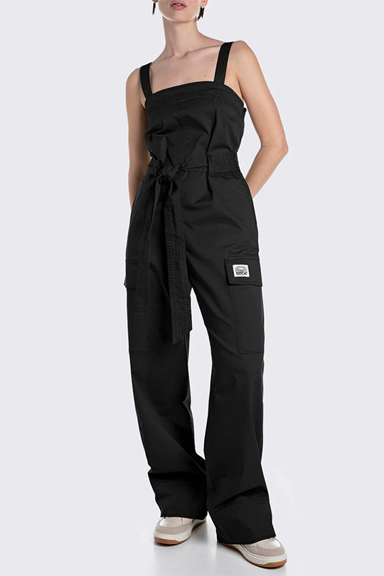 אוברול נשי ואורבני עם כתפיות רחבות, גזרה רחבה ומחמיאה, וקשירה במותן להדגשת הצללית. כולל כיסי צד ומראה מודרני עם טוויסט ספורטיבי. צבע שחור קלאסי שמתאים גם ליום וגם לערב – פשוט ללבוש ולהרשים.