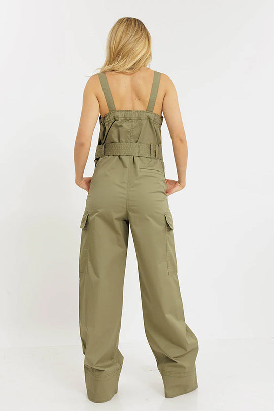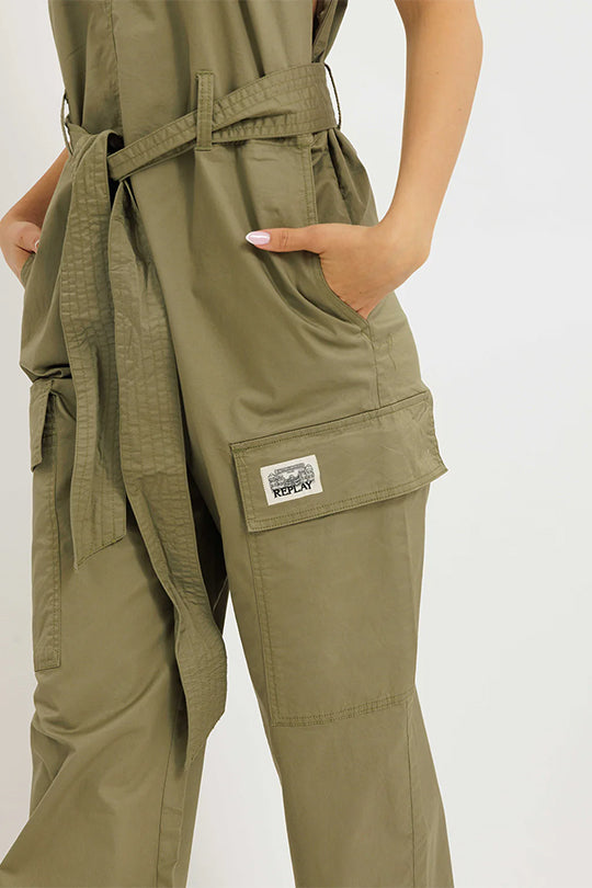 אוברול מחמיא ונועז לנשים עם כתפיות רחבות, חגורת קשירה במותן וכיסים פונקציונליים בגזרה רחבה ומשוחררת. צבע חאקי קלאסי למראה אורבני שיקי שמתאים לשעות היום או לערב קליל. פריט בולט שמשלב נוחות וסטייל