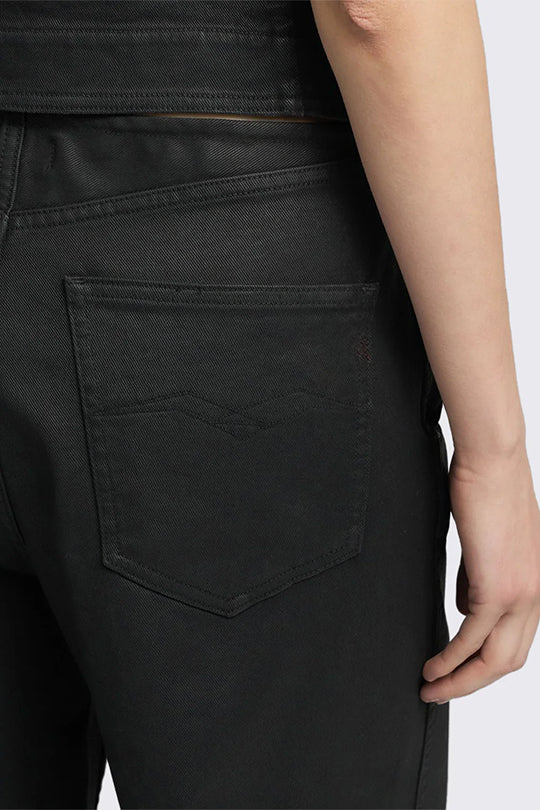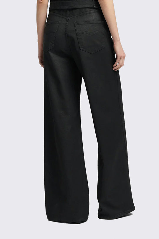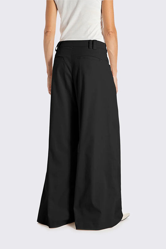 מכנסיים לנשים בגזרה גבוהה ורחבה בצבע שחור קלאסי. עשויים בד נעים ונשפך בגימור אלגנטי, עם קפלים עדינים מלפנים, סגירת רוכסן וכפתור, וכיסים צדדיים נוחים. מתאימים לשילוב עם חולצה תחובה או קרופ לוק אופנתי ואלגנטי כאחד – מושלם למראה ערב או יום-יומי מוקפד.
