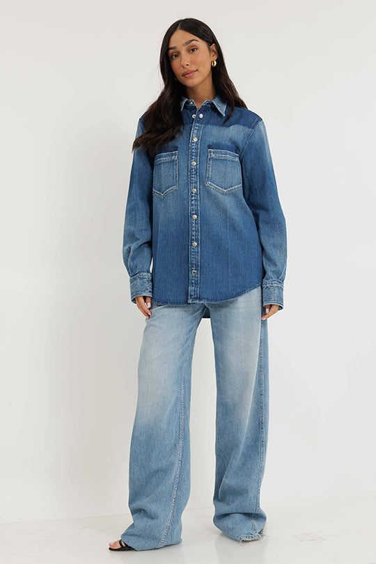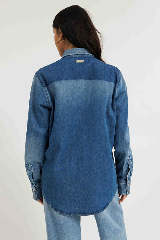 חולצת ג’ינס קלאסית עם טאץ’ מודרני. גזרה נינוחה, כיסים קדמיים ושילוב של גוון כחול עם אפקט דהייה עדין שמעניק לה מראה עדכני. נסגרת עם כפתורים לכל האורך ומתאימה גם כלייר על גופייה או טי־שירט וגם כחולצה בפני עצמה. בחירה מושלמת ללוק יומיומי עם סטייל.