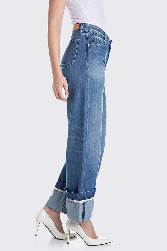 הכירי את הג'ינס המושלם למראה נינוח ואופנתי – ג'ינס לנשים בגזרה רחבה עם כפל עבה וטרנדי בקצה הרגל. עשוי דנים איכותי בגוון כחול קלאסי עם שטיפות עדינות, הג'ינס כולל מותן בינונית, רוכסן וכפתור, וחמישה כיסים בסגנון קלאסי. הגזרה הרחבה והכפל הרחב מוסיפים טאץ' מודרני ובולט שמתאים לכל אאוטפיט יומיומי או לערב מעוצב. אידיאלי לשילוב עם גופיות, טי-שירטס או חולצות אלגנטיות ונעלי עקב או סניקרס.