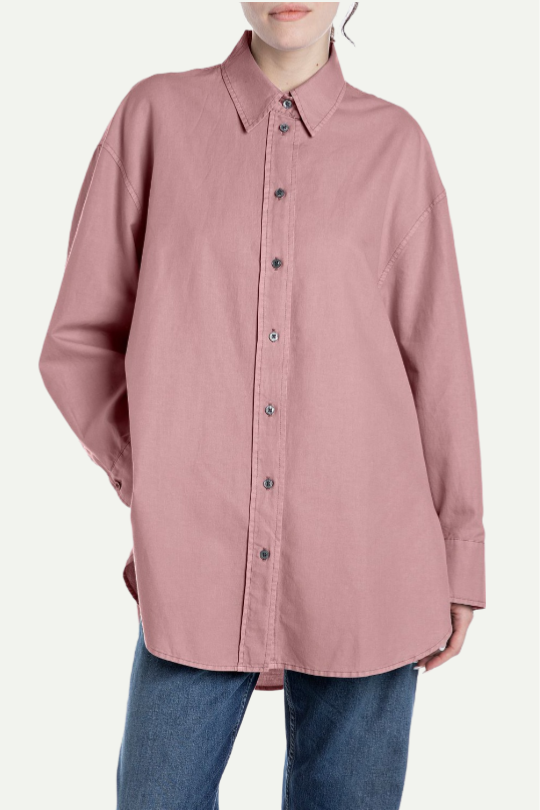 חולצה מכופתרת אוברסייז בצבע ורוד