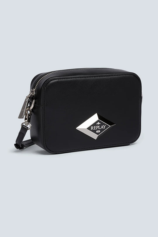 תיק צד לנשים בצבע שחור עם אלמנט מתכתי