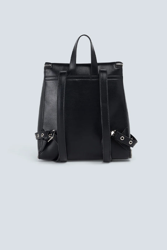 תיק גב לנשים בצבע שחור עם רוכסן עליון