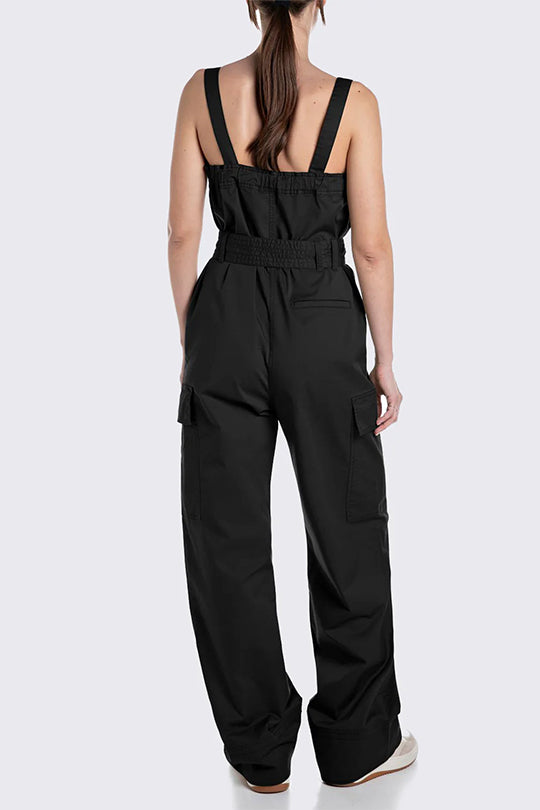 אוברול סטרפלס לנשים בגזרה רחבה בצבע שחור
