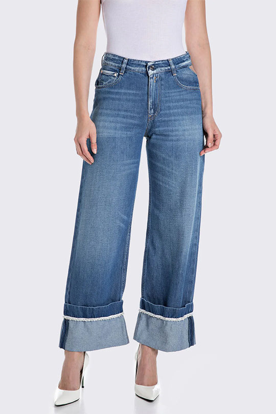 מכנסי ג'ינס רחבים לנשים בצבע כחול