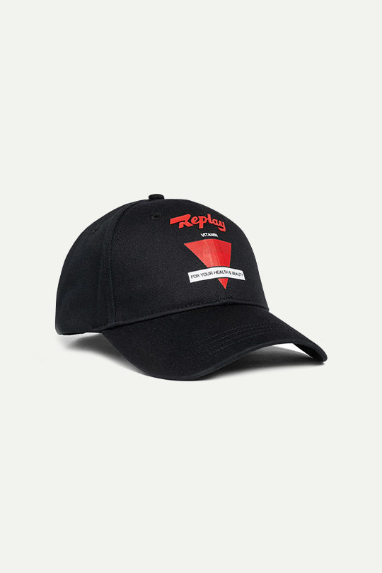 כובע מצחייה שחור עם הדפס חץ אדום