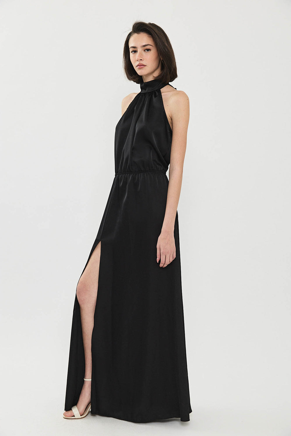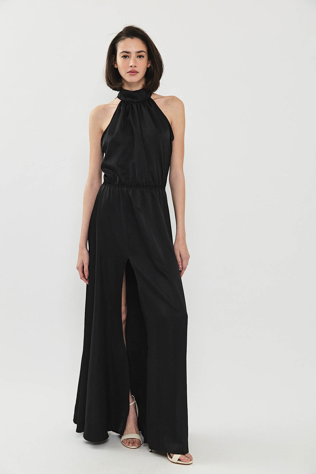 שמלת ערב מקסי שחורה עם צווארון גולף