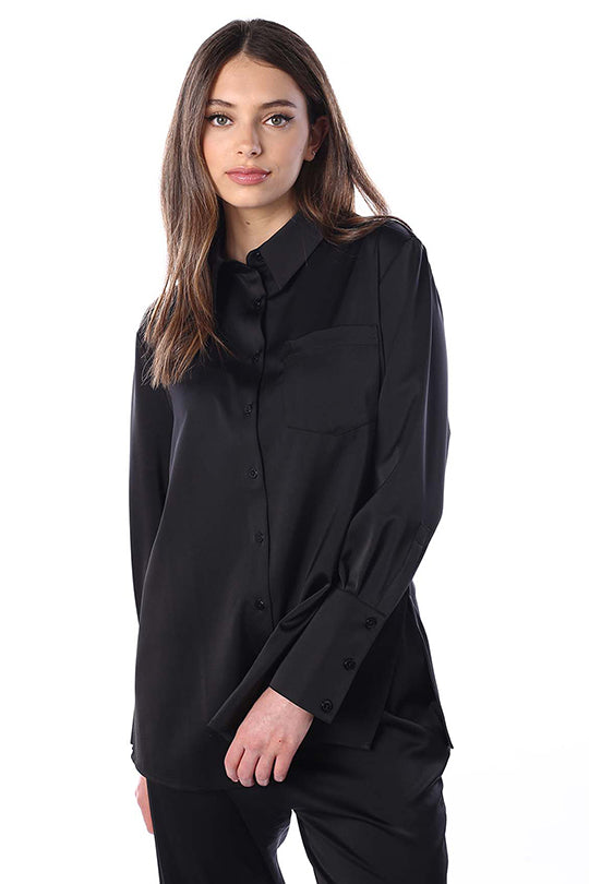 חולצה מכופתרת Napa בגזרה רחבה בצבע שחור