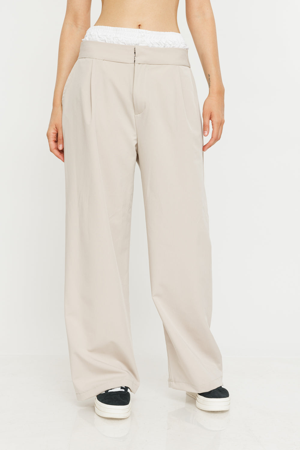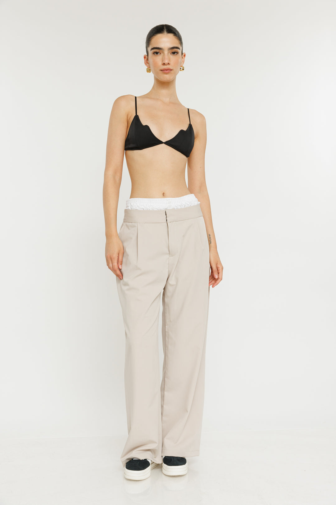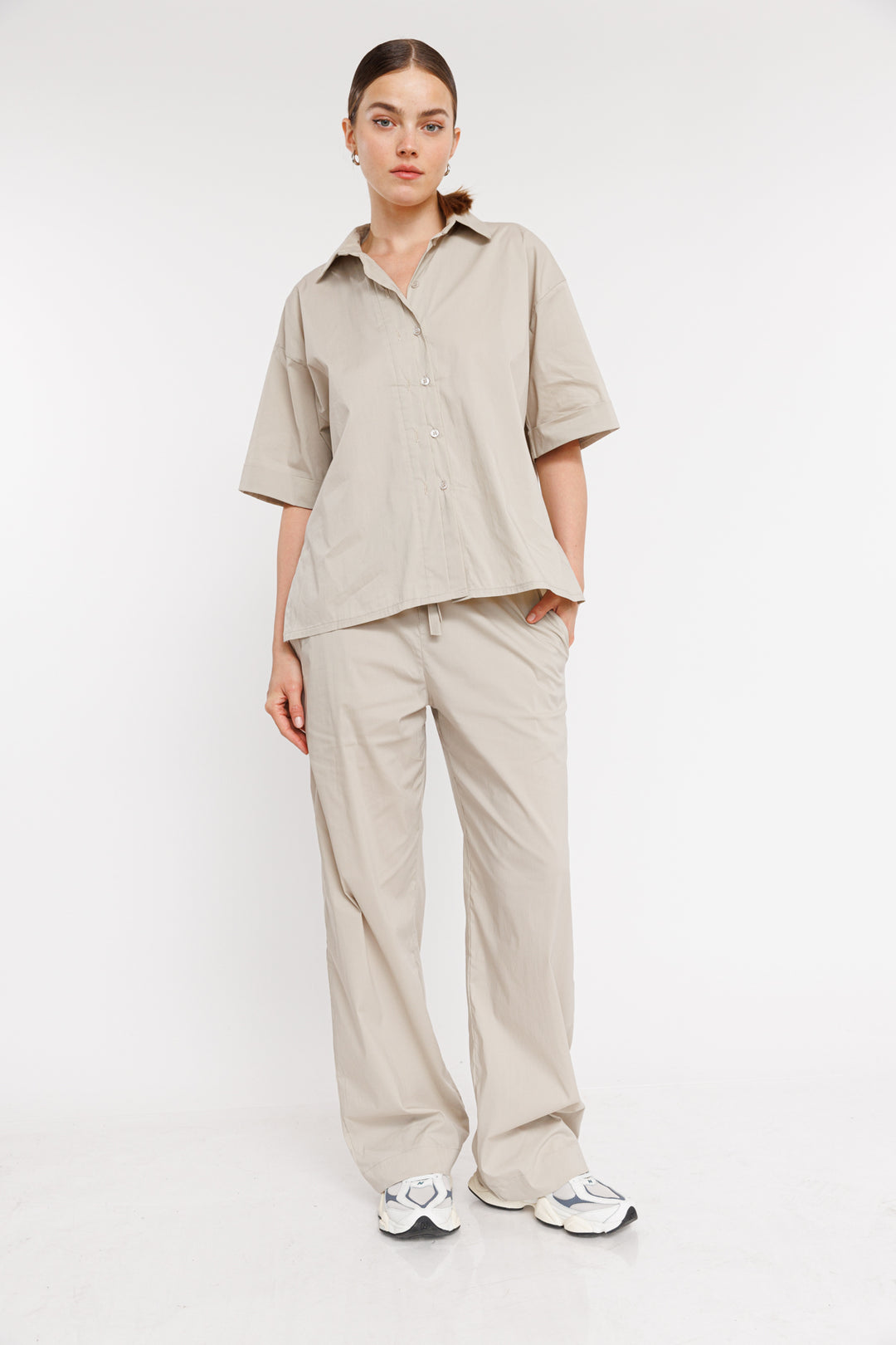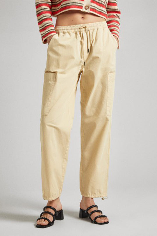 מכנסיים בגזרה משוחררת Vivi בצבע בז'