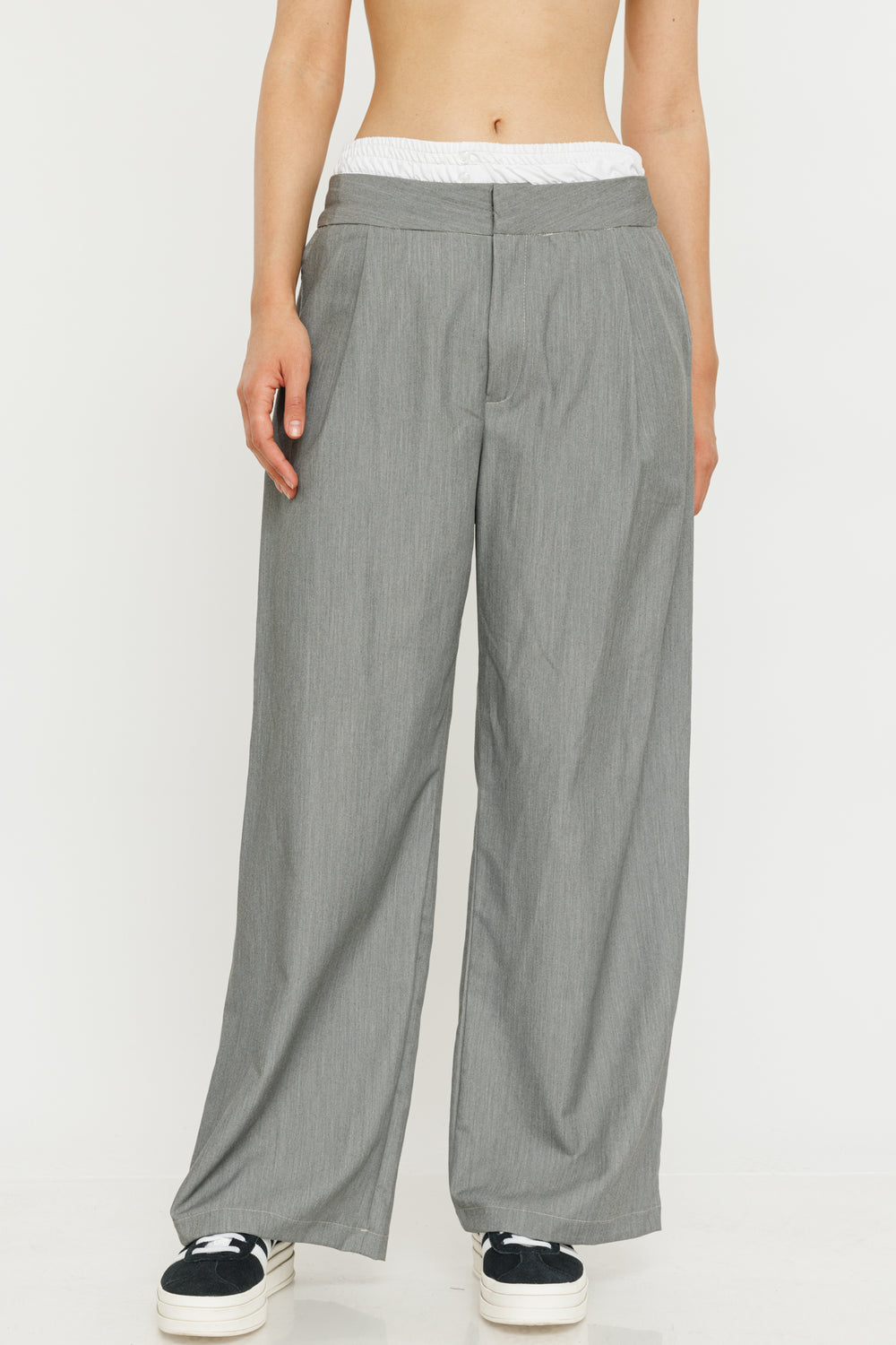 מכנסיים עם חגורת מותן כפולה Celine בצבע אפור