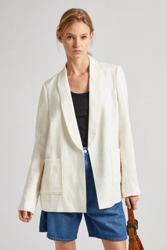 ג'קט בלייזר פשתן Mirka בצבע לבן