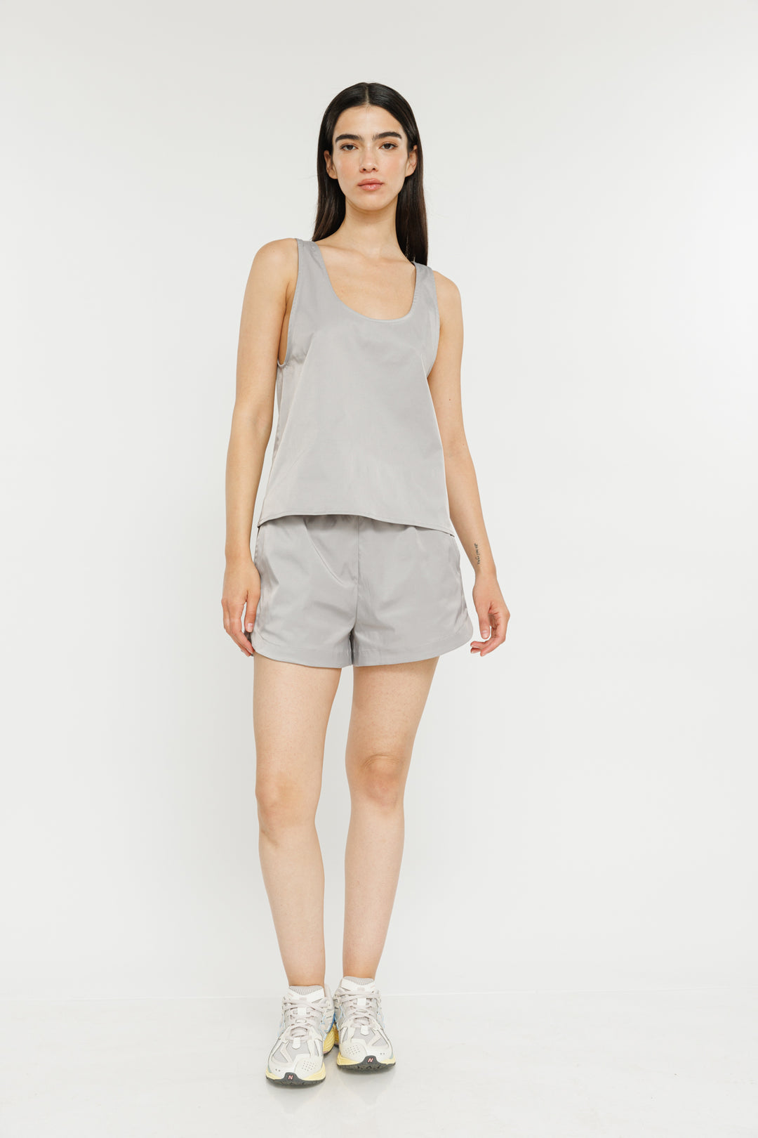 מכנסי ניילון ארוכים Oversize בצבע לבן