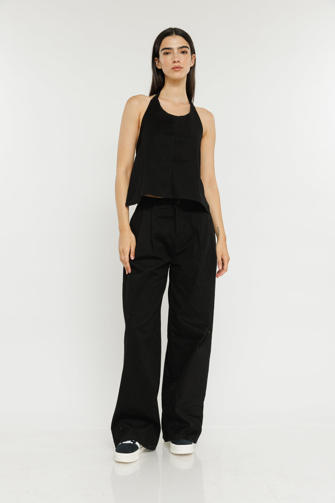 מכנסיים מחוייטים רחבים Mmy בצבע שחור