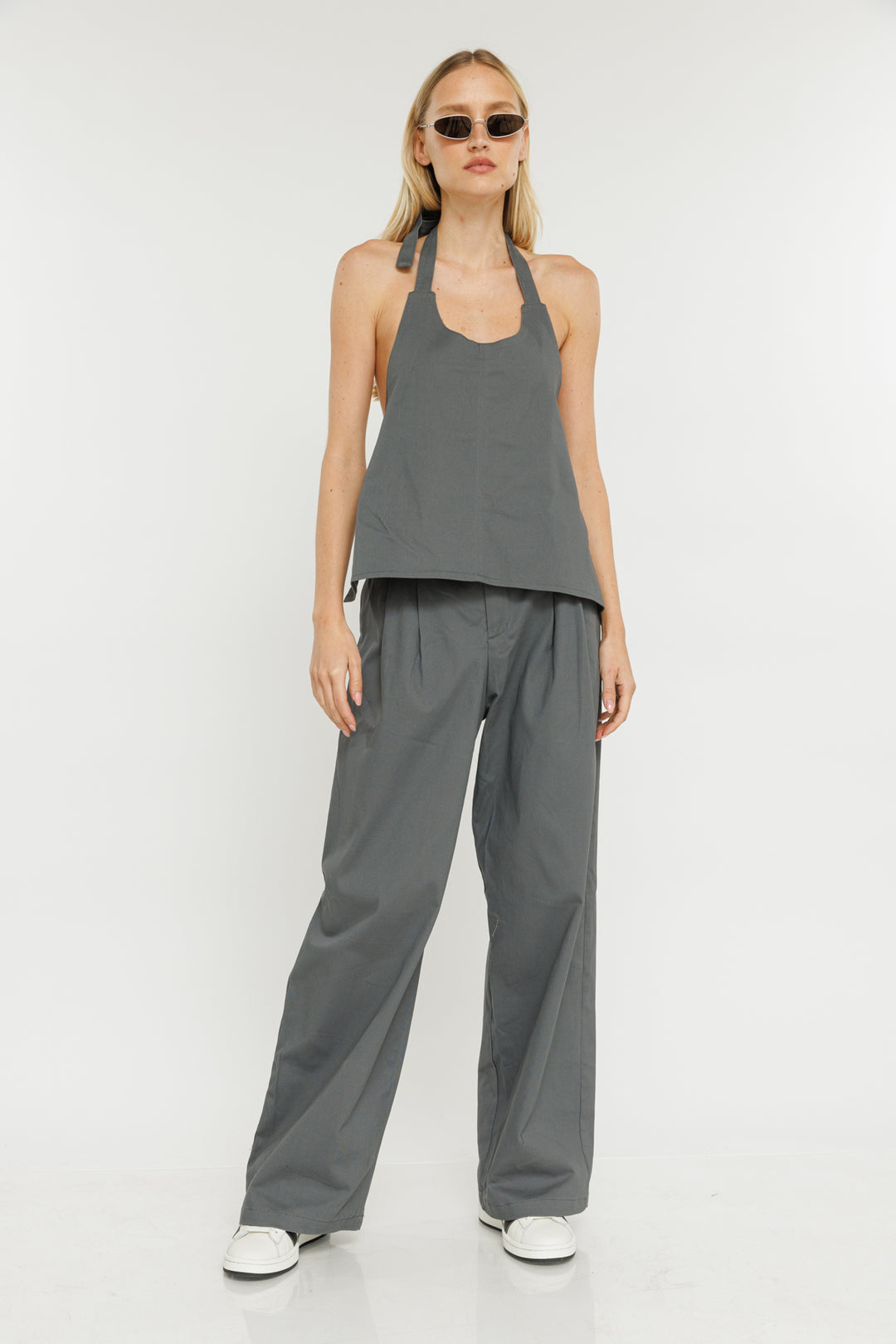 מכנסיים מחוייטים רחבים Mmy בצבע אפור