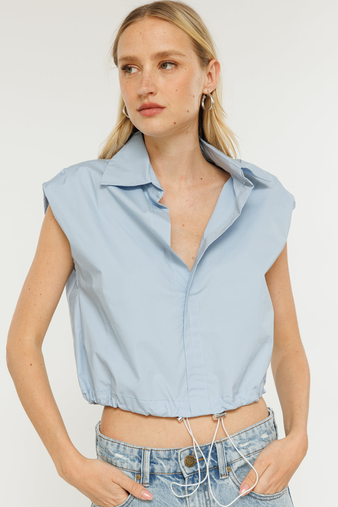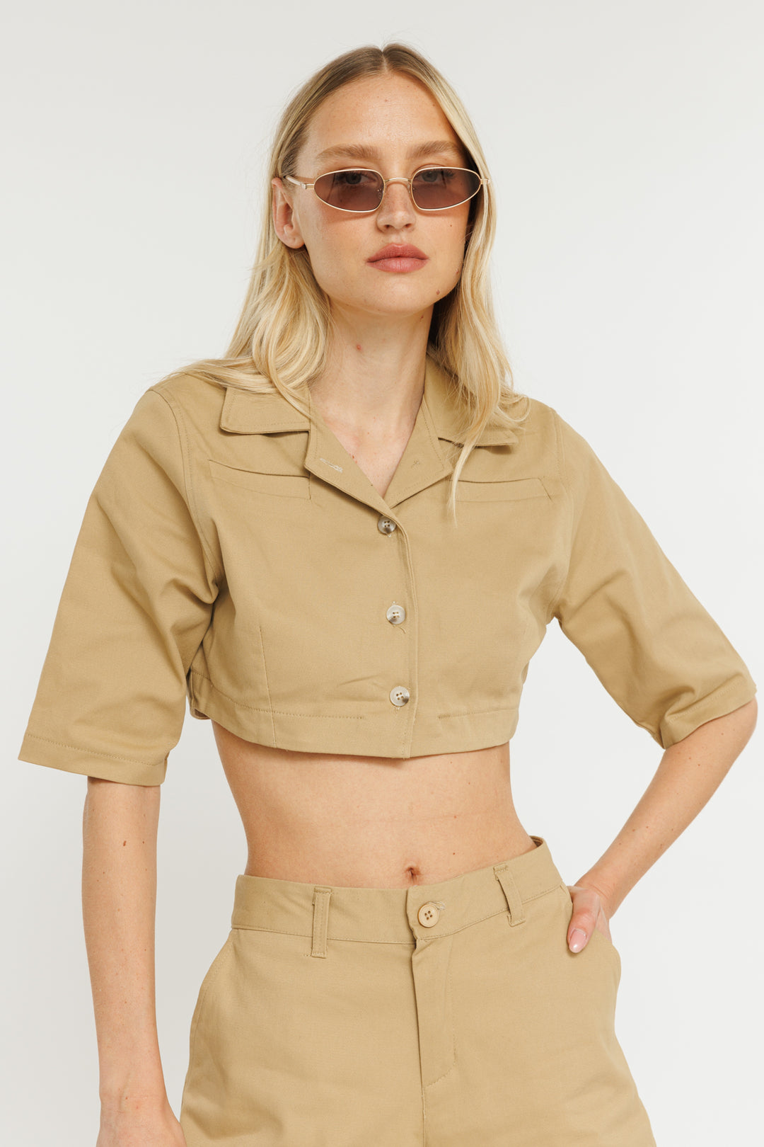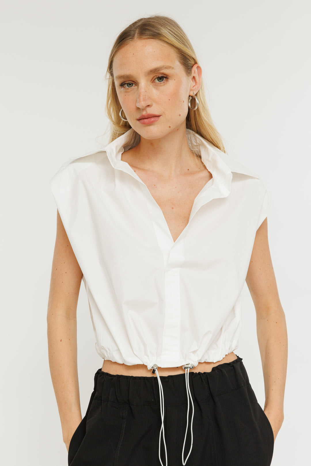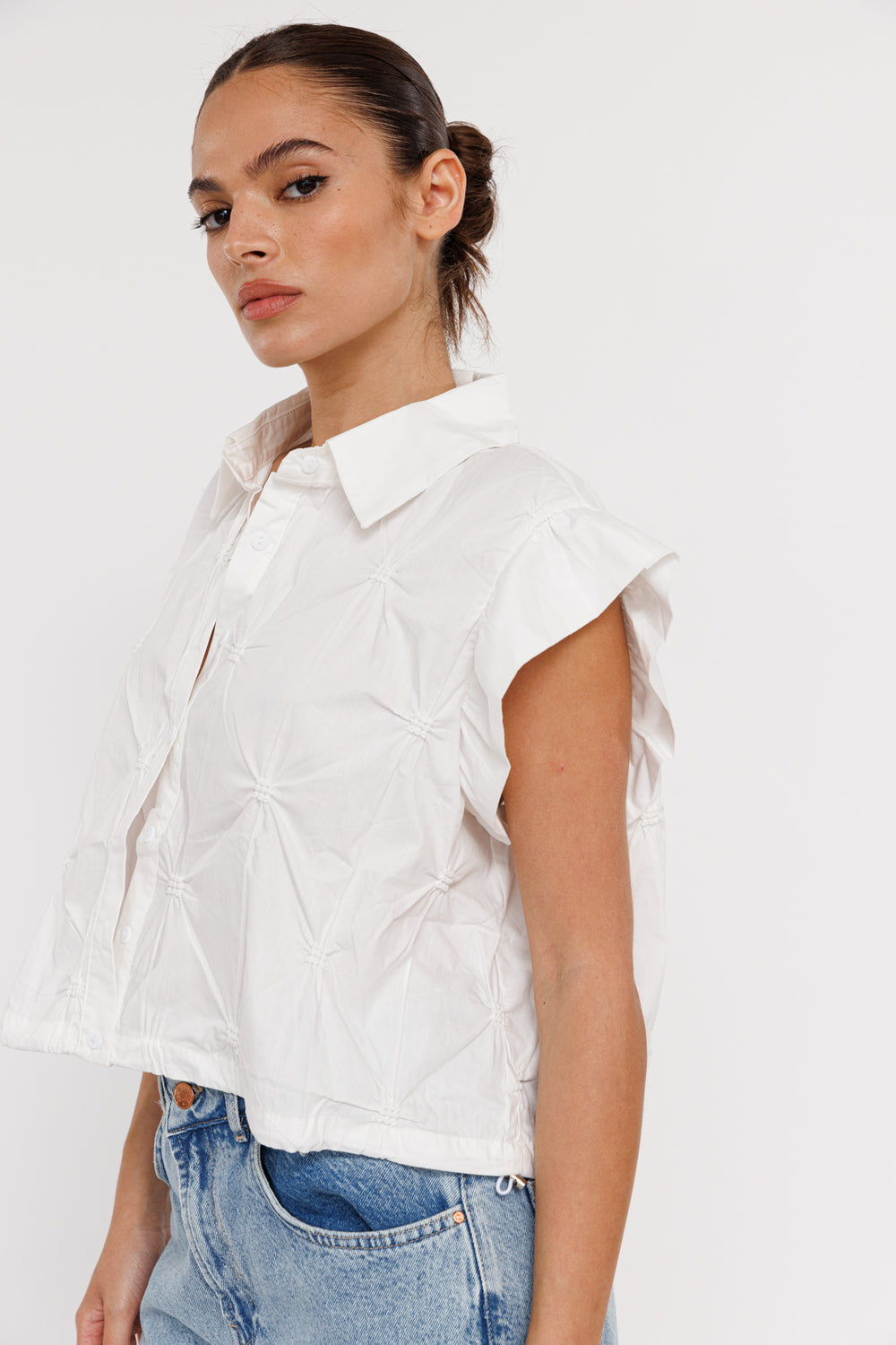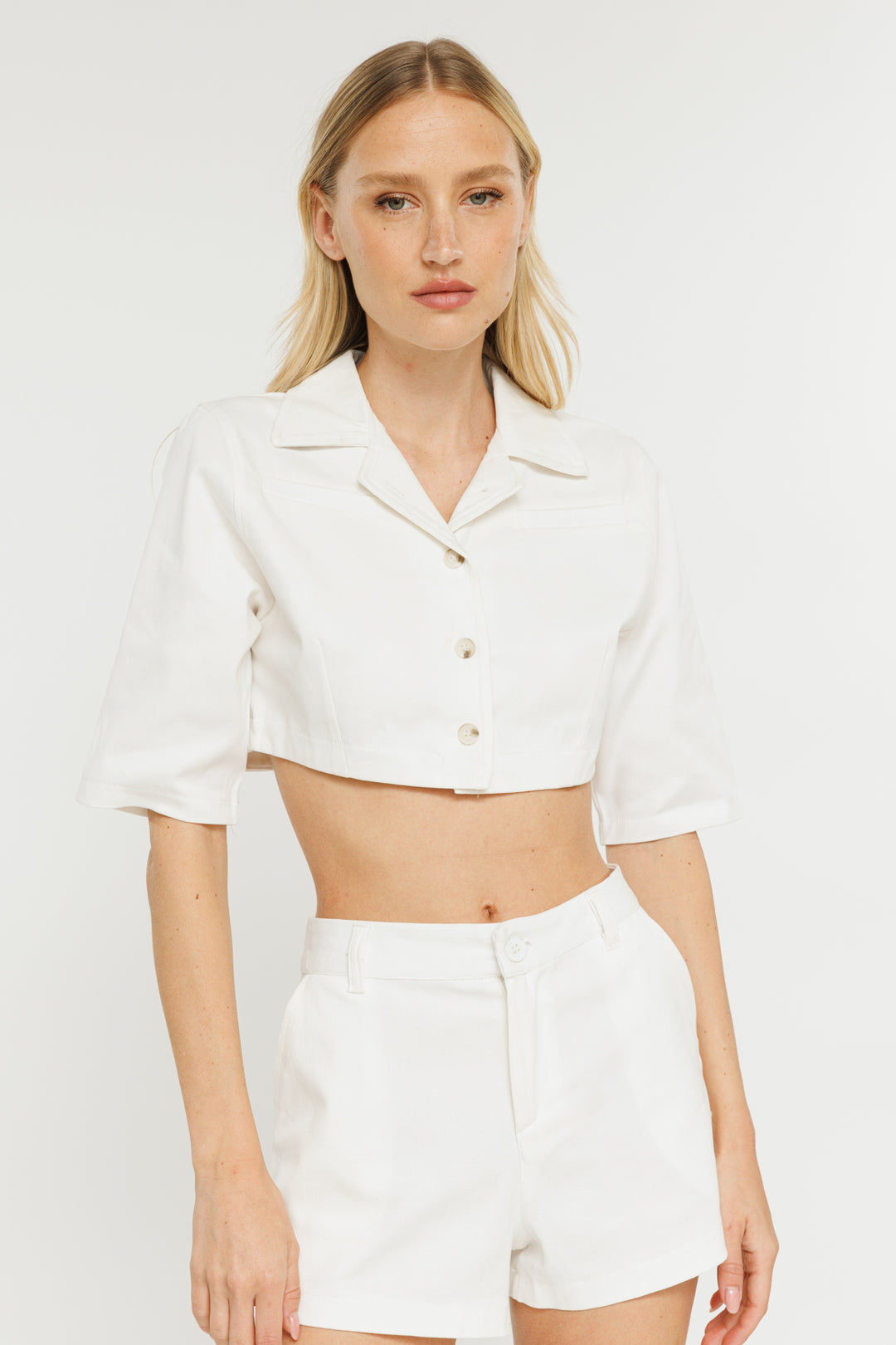 חולצת קרופ מכופתרת Meme בצבע לבן