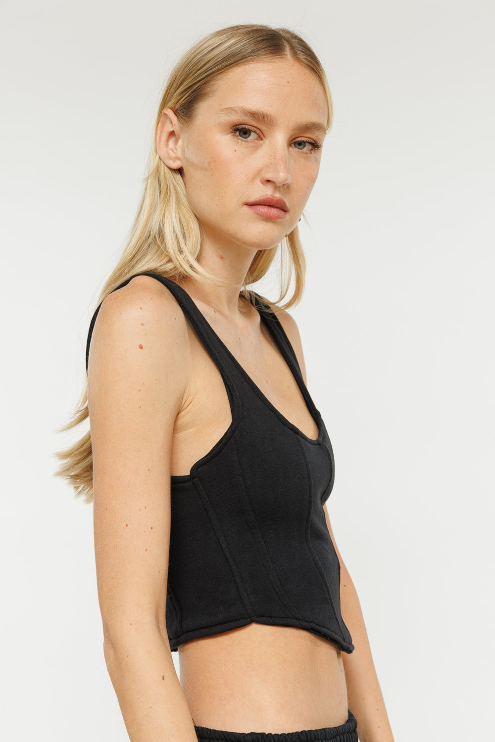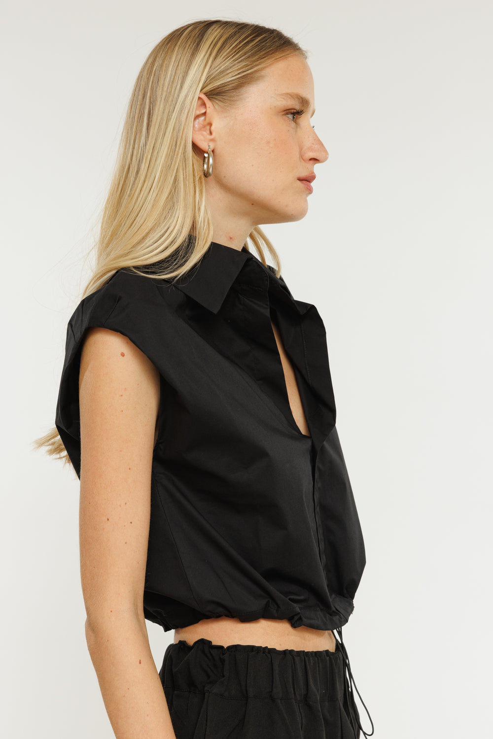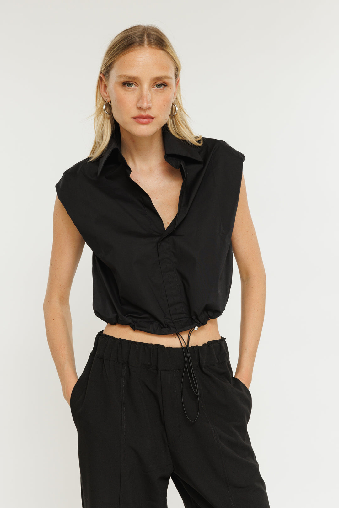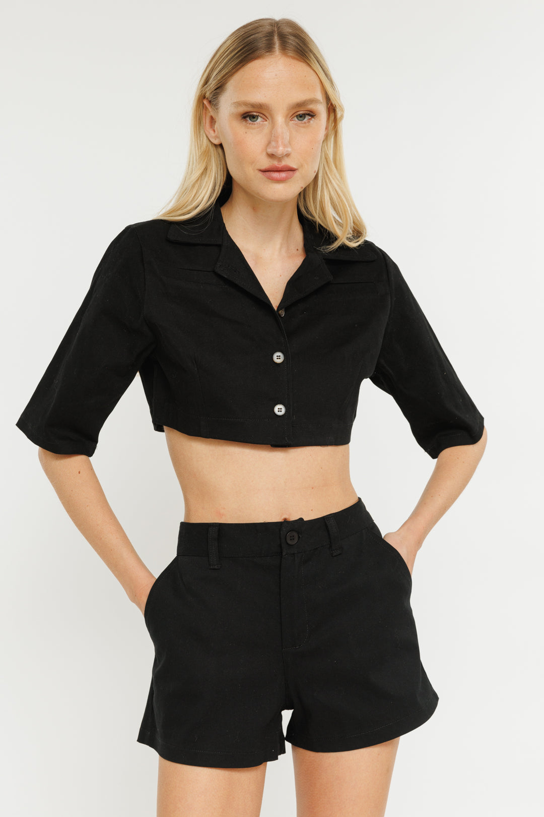 חולצת קרופ מכופתרת Meme בצבע שחור