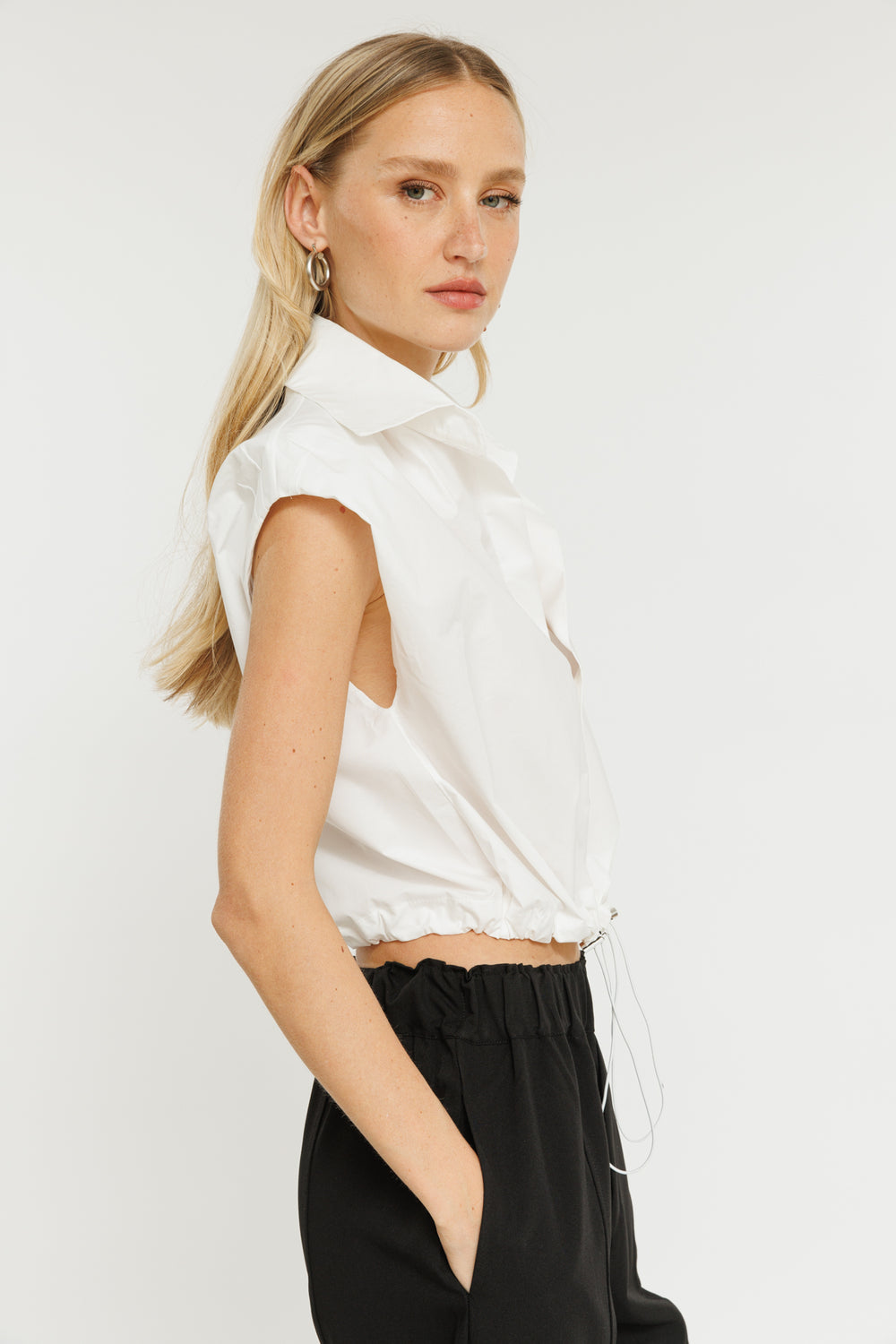 חולצת מעטפת מכופתרת Crisscross בצבע לבן