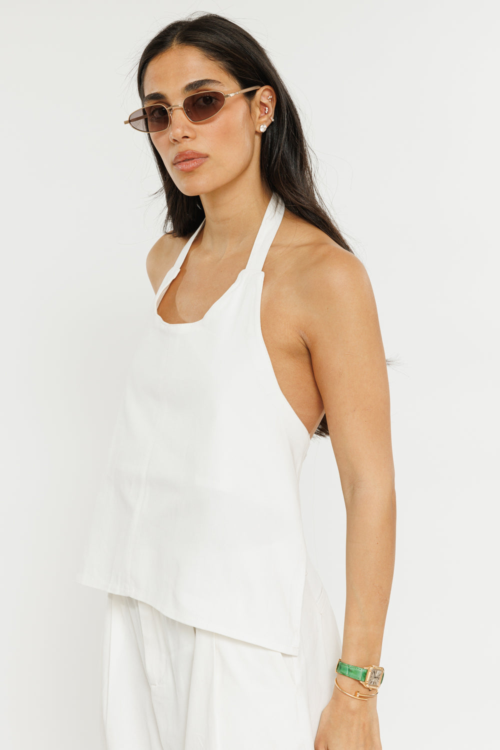חולצה מכופתרת קצרה Milos בצבע לבן
