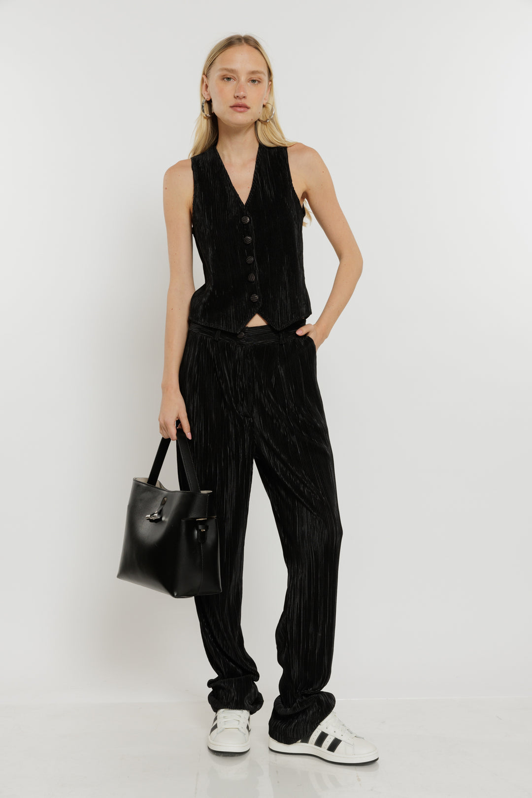 מכנסיים בגזרה רחבה Jessie בצבע שחור
