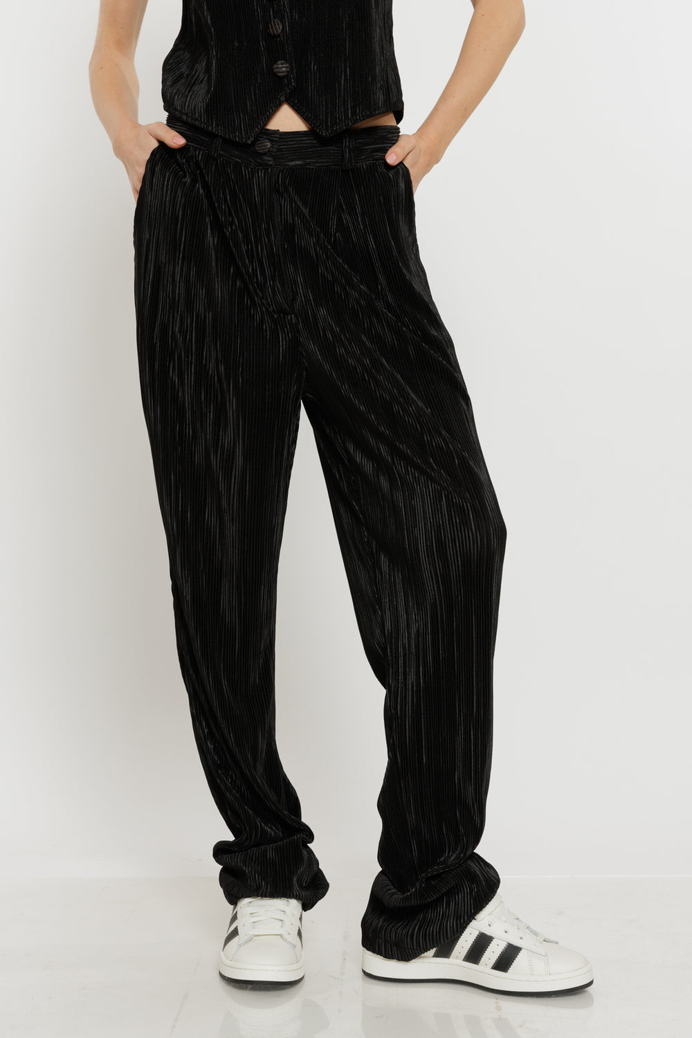 מכנסיים בגזרה ישרה Suwyer פליסה בצבע שחור