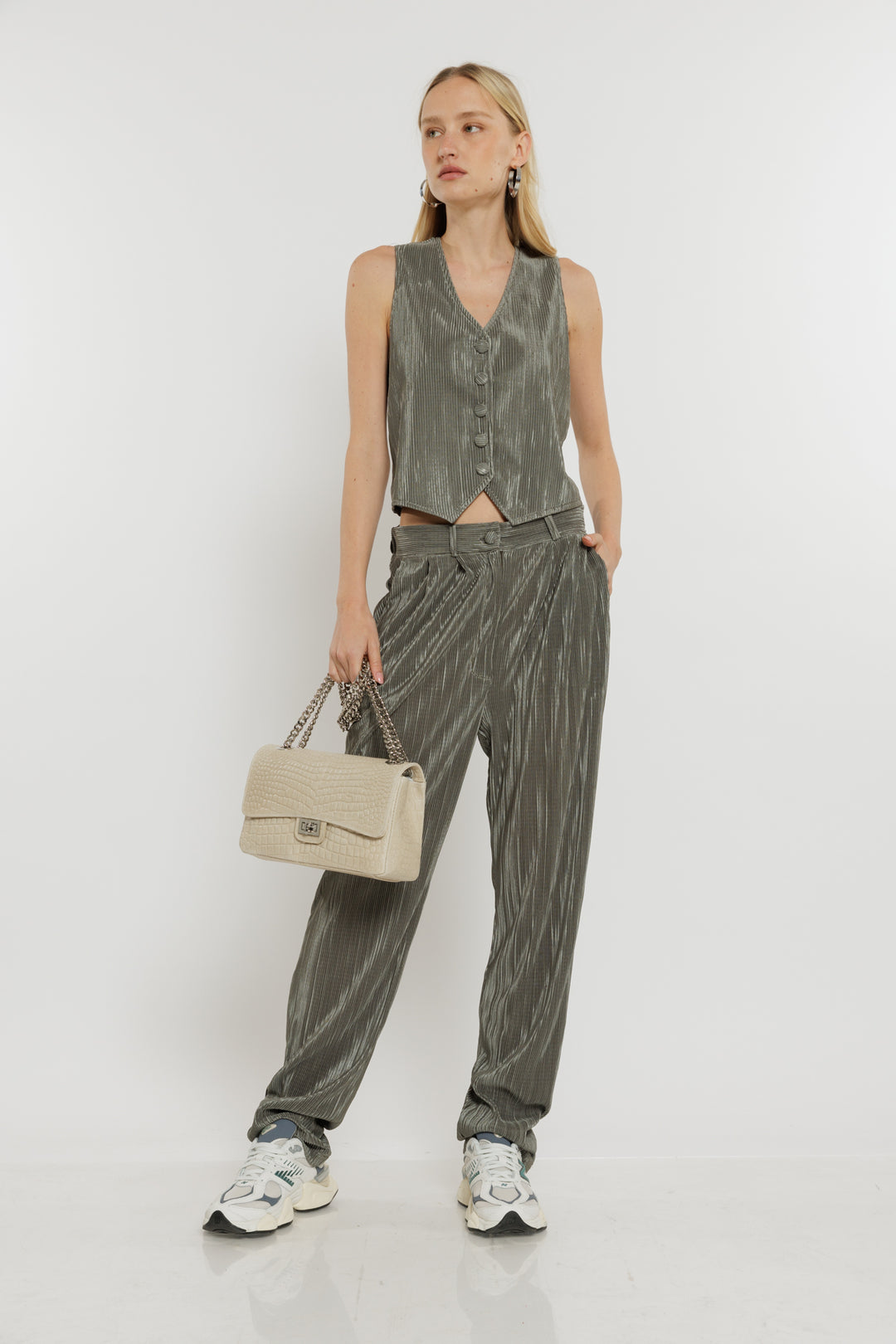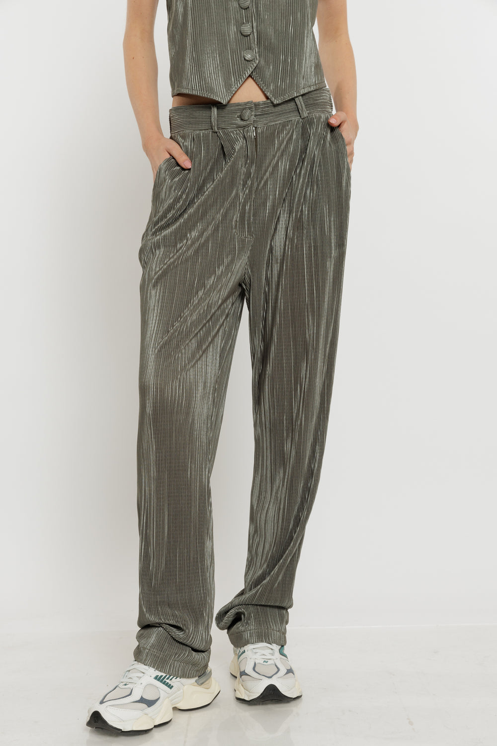 מכנסיים בגזרה ישרה Suwyer פליסה בצבע זית