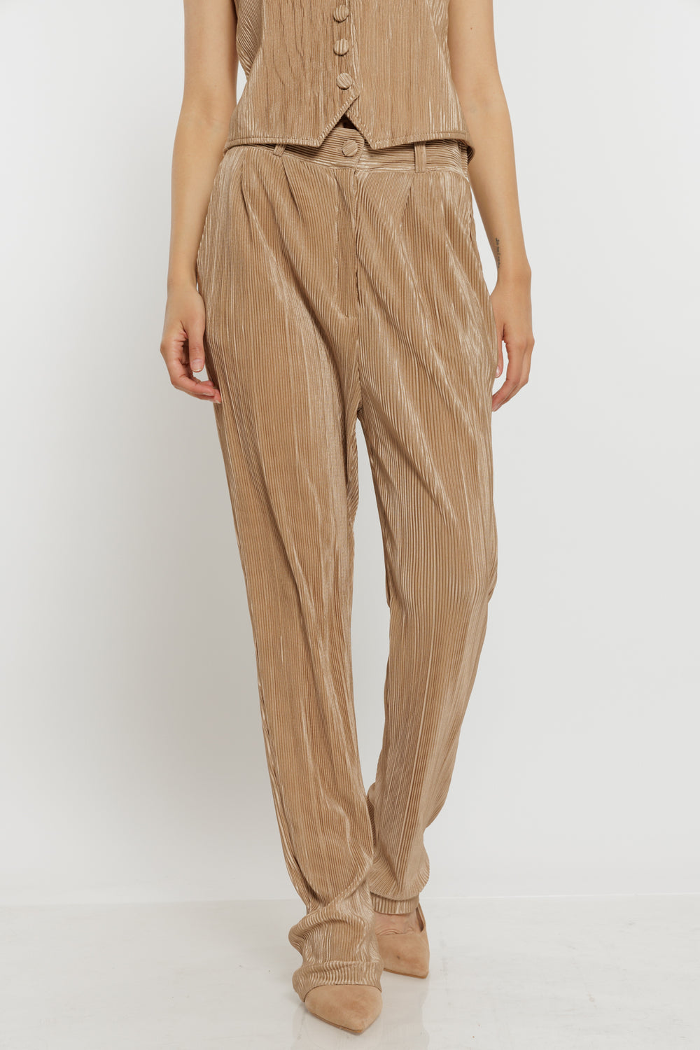 מכנסיים בגזרה ישרה Suwyer פליסה בצבע בז'