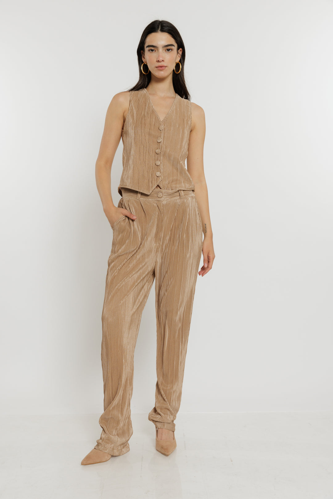 מכנסיים בגזרה רחבה Rene בצבע אבן