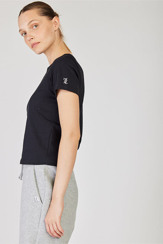 חולצה קצרה מכופתרת Knit Crop בצבע שחור