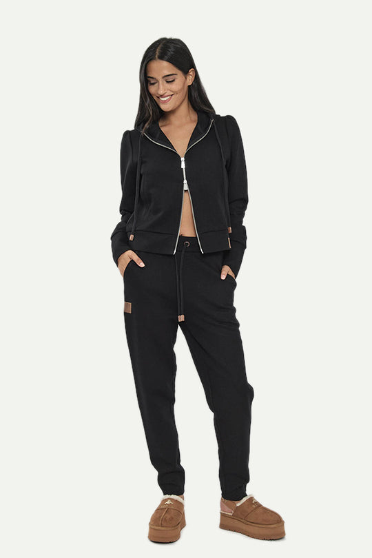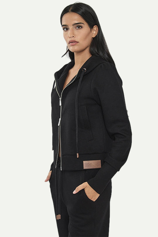 קפוצ’ון קצר עם רוכסן קדמי, כובע ושרוך מותאם. גזרה מחמיאה ונוחה עם מראה ספורטיבי נקי, מושלם ליום יום או לאאוטפיט סטייליסטי ונינוח.