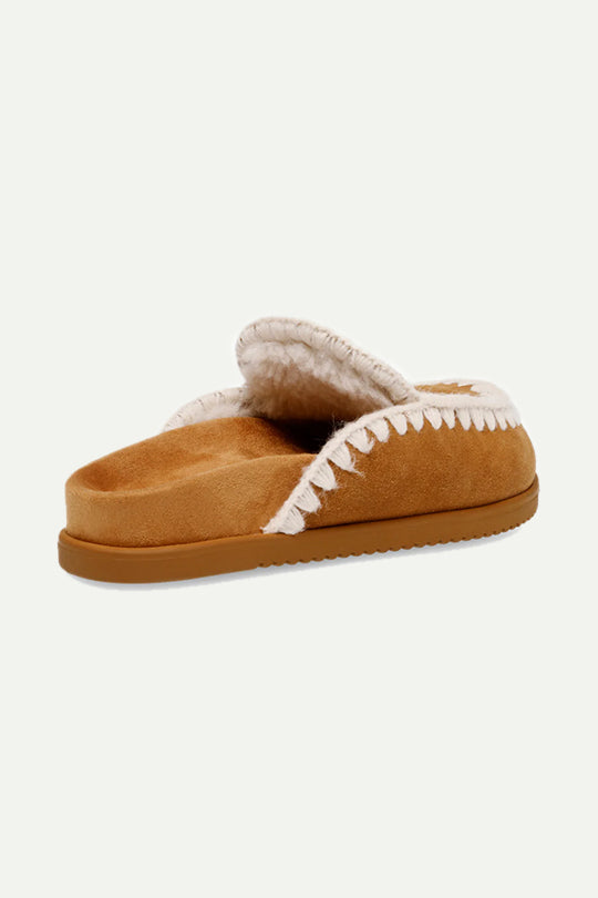 כפכפים בעיצוב קז’ואלי עם גימור סרוג לבן שמעניק מראה חורפי וחמים