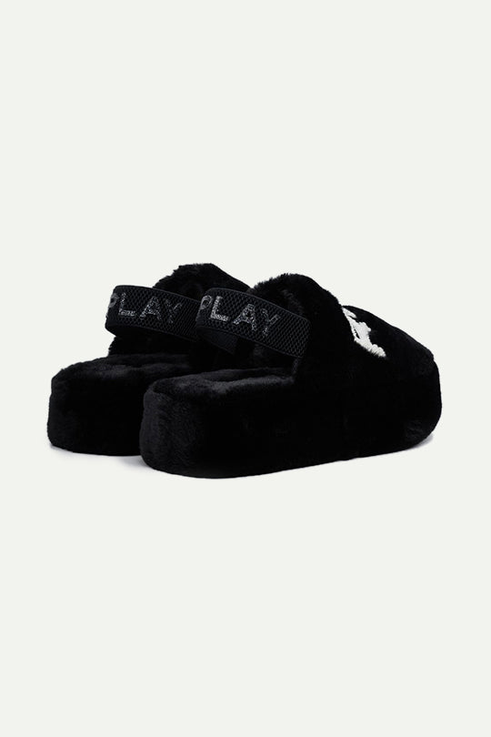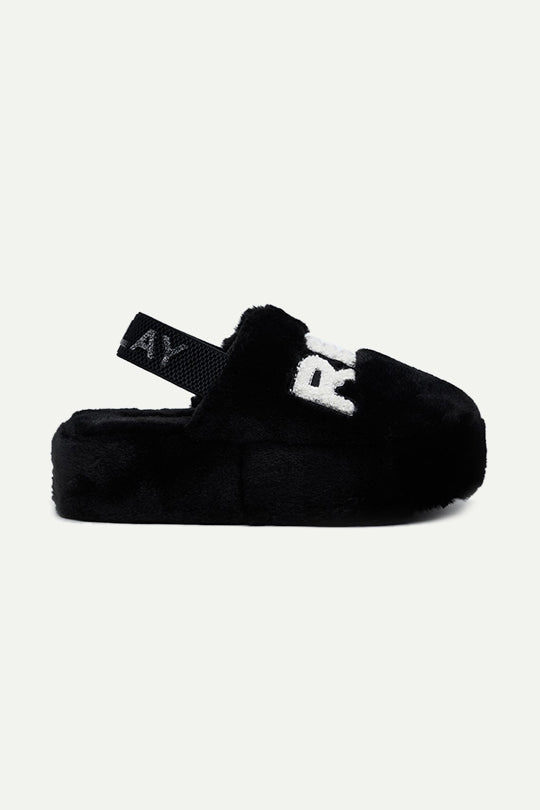 כפכפי פרווה לנשים בעיצוב נוח ומפנק בצבע שחור. עשויים בד פרווה רך במיוחד למגע חמים ונעים, עם סוליית פלטפורמה קלה ונוחה לדריכה יציבה. רצועת גומי אחורית עם כיתוב REPLAY שומרת על אחיזה מושלמת, ולוגו בולט מלפנים להשלמת הלוק. מושלמים לבית או ליום רגוע בסטייל מפנק.