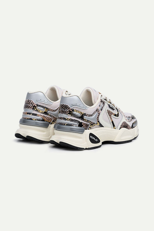 סניקרס אופנתיות לנשים מדגם DESTINY בעיצוב מודרני בגווני לבן,אפור והדפס מנומר, בשילוב חומרים איכותיים המעניקים עמידות ונוחות מרבית. הסוליה המעוצבת והבולמת זעזועים מתאימה ליום עמוס או לטיול עירוני, והלוגו של REPLAY מוסיף טאצ' יוקרתי ללוק הספורטיבי.
