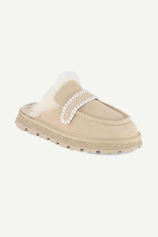 כפכפי מוקסין עם פרווה בצבע בז׳