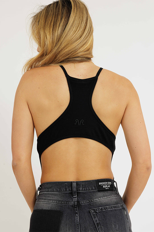 בגד גוף בגזרת רייסר עם גב פתוח, מבד ריב נעים שמחמיא לגוף. פריט יומיומי עם טוויסט – ניתן לשלב בקלות עם ג׳ינס או חצאית ולהרגיש הכי קולית שיש. מבית המותג REPLAY.