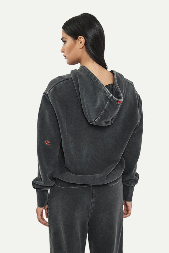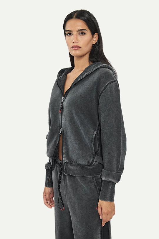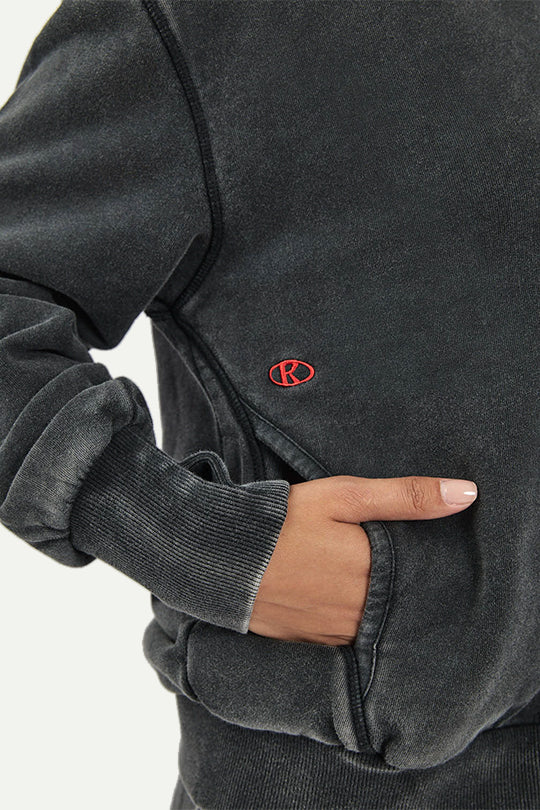 קפוצ’ון רוכסן בגזרה משוחררת ונעימה. מגיע בצבע שחור עם בד טרי רך, כיסי צד ולוגו קטן על השרוול. סיומות ריב מחזיקות את הגזרה. מתאים לשילוב יומיומי או כסט עם מכנס תואם ללוק נינוח ומדויק.